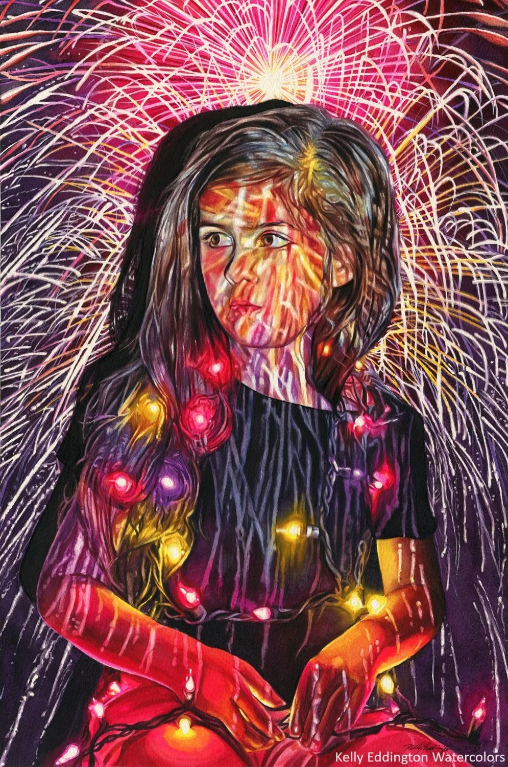 I love to paint portraits (especially of people I know). Nothing satisfies me more than the moment when I realize that I have created a good likeness of my subject. It's a mixture of magic and relief. I work from reference photos and will often alter them in terms of color and composition before I paint them.